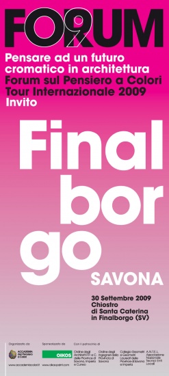 Carlo Cappai and Maria Alessandra Segantini speaking of C+S projects at the Forum 2009 Pensare ad un futuro cromatico, St Catherine's Cloister, Finalborgo, Savona.